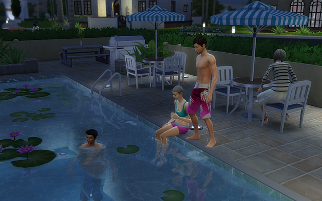 Who would have suspected! By the time I reached the Arid Ridge, Stephon was already in the pool swimming. He said he was already here for a while before I showed up. He invited Lydia to come who showed up a bit later. However, when she arrived, she looked pretty miserable. She went straight to the garbage bin and kicked it over spilling garbage everywhere. Now, I’m just sitting with Stephon and told him, “You better go talk to her bro, she’s all yours!” He gave me a pretty sour look, Hehe! I have a feeling this is gonna get very interesting soon.