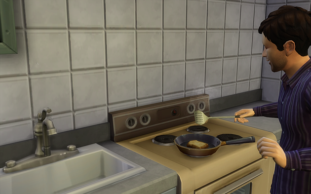 Cooking up a grilled cheese sandwich.