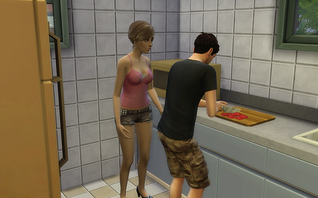 Well, I think Tara’s kinda cheering up now. I just finished making us some dinner. I went easy today because I don’t have an oven anymore. So, I whipped up some beautiful garden salad and brought out another dish of that old leftover grilled fruit. I did warn Tara that the grilled fruit was almost on its way out, but if she wanted to try some it was at her own risk, hehe! She gave me a cute smirk. I hope she enjoys the garden salad. I packed it with a lot of fresh and juicy vegetables!