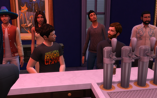 I’m just at the Blue Velvet with my dad right now, we decided to go out and have some more drinks! Stephon, Bob, and Gilbert are here as well. My dad hasn’t met Bob or Gilbert yet, so I introduced him to the two. It’s pretty packed tonight. Oh, and hello again, Genevieve, hehe! She’s tending the bar tonight. That’s why she had to leave my place so early. Well, it looks like it’s gonna be a pretty awesome night! The music is good, the gang is here, and the booze is flowing!